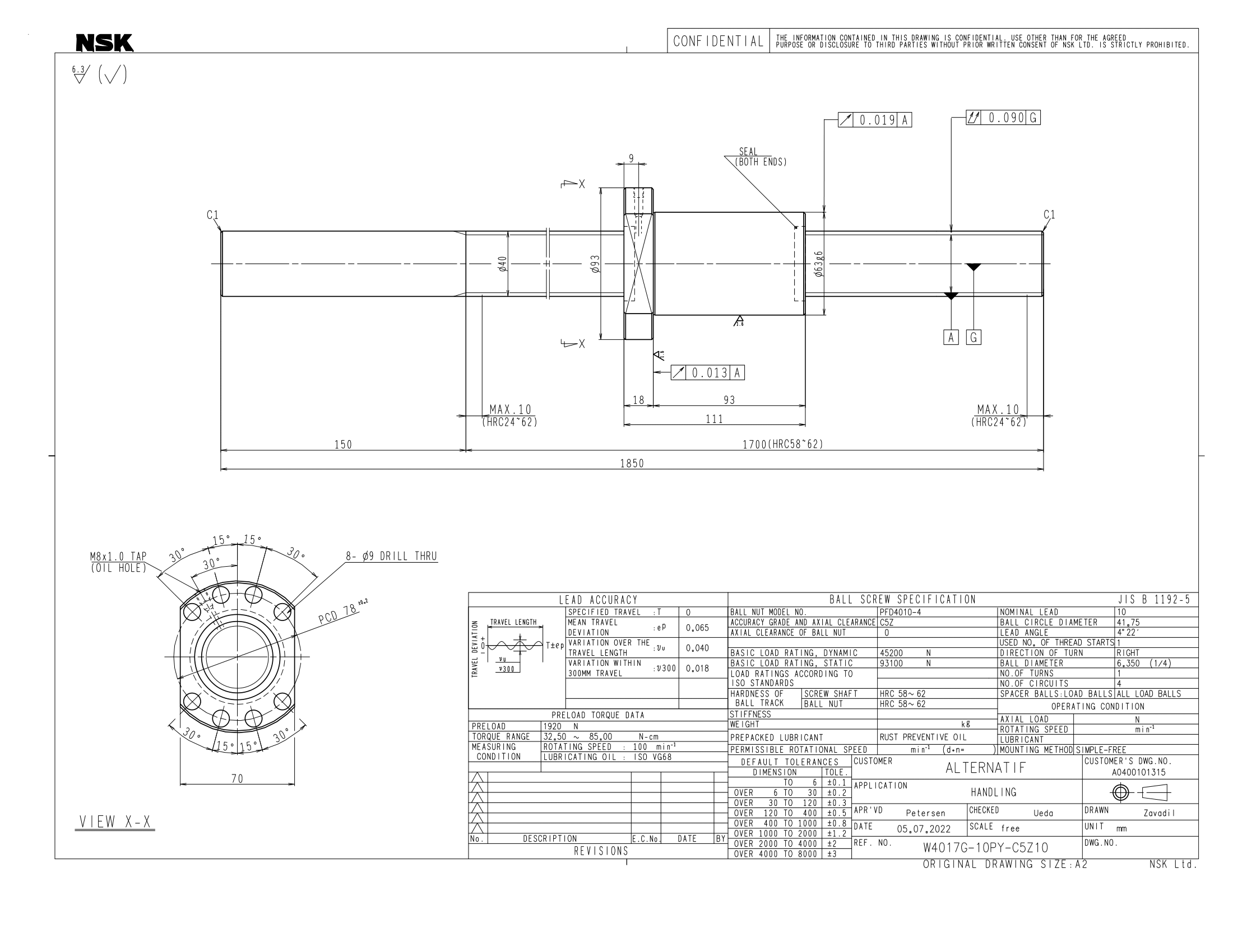 | Vidalı Mil Toplam Uzunluk: | 1850 |